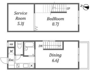 | 間取りタイプ | 1DK / DK6.6帖、洋室8.7帖、サービスルーム5.3帖 | ||