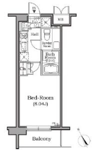 | 間取りタイプ | 1K / 洋室8.04帖 | ||