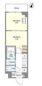 | 間取りタイプ | 2K / 洋室4.3帖、洋室4.2帖 | ||